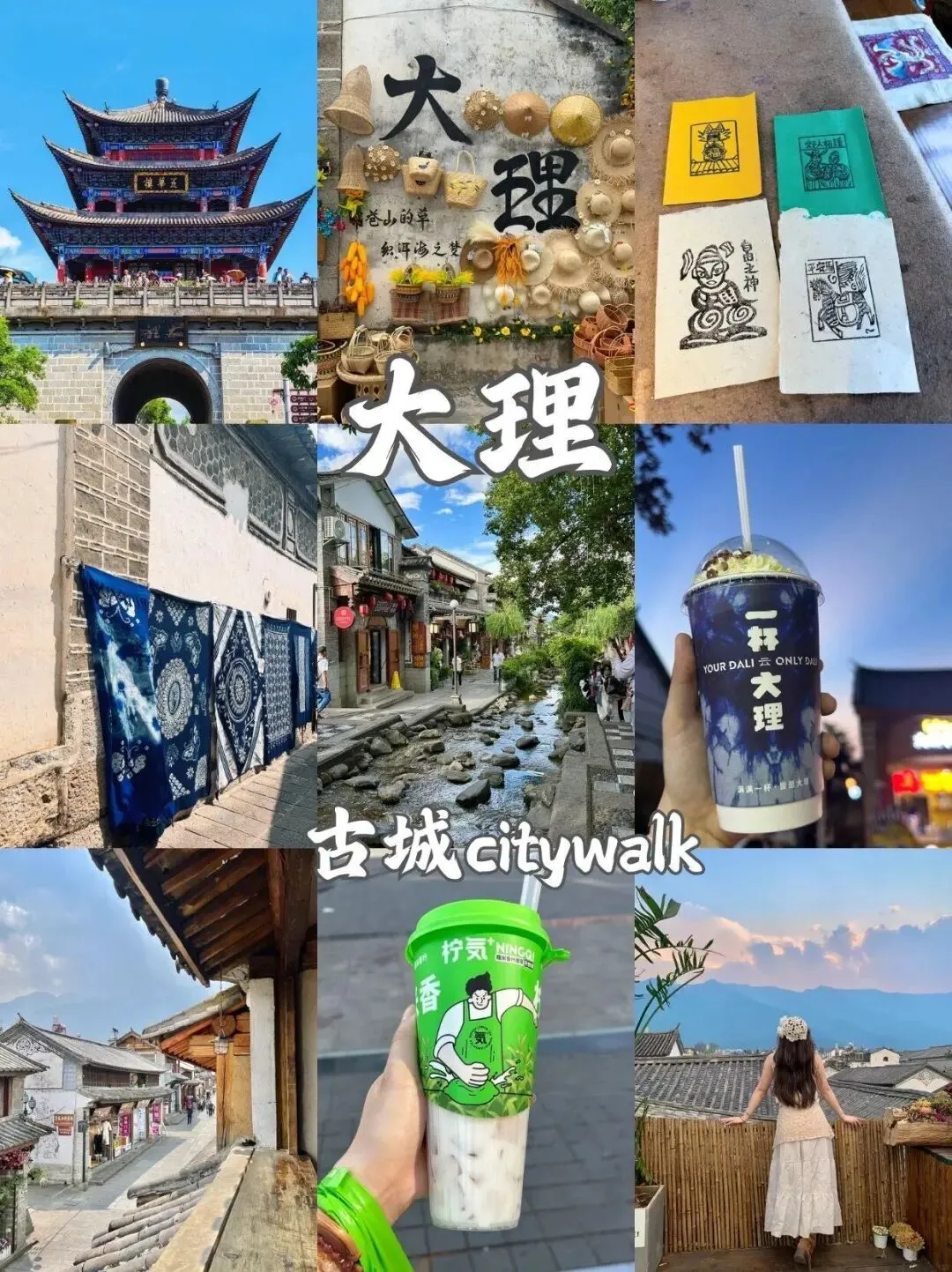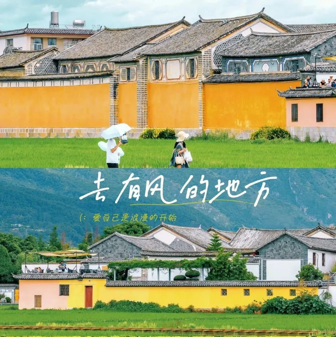 喜洲古镇:麦田与白族民居同框,喝咖啡晒太阳,治愈感拉满。