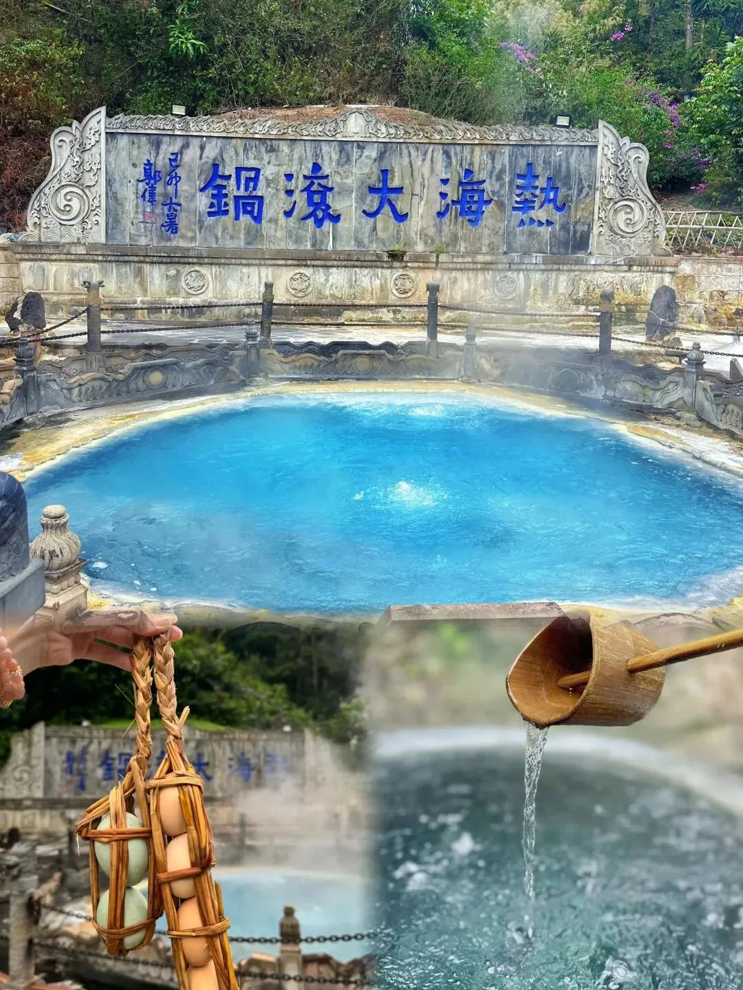 热海景区:中国顶级地热奇观,98℃大滚锅可煮鸡蛋,珍珠泉、蛤蟆嘴、怀胎井沿步道分布,空气里都是硫磺暖意,必泡天然硫磺泉。