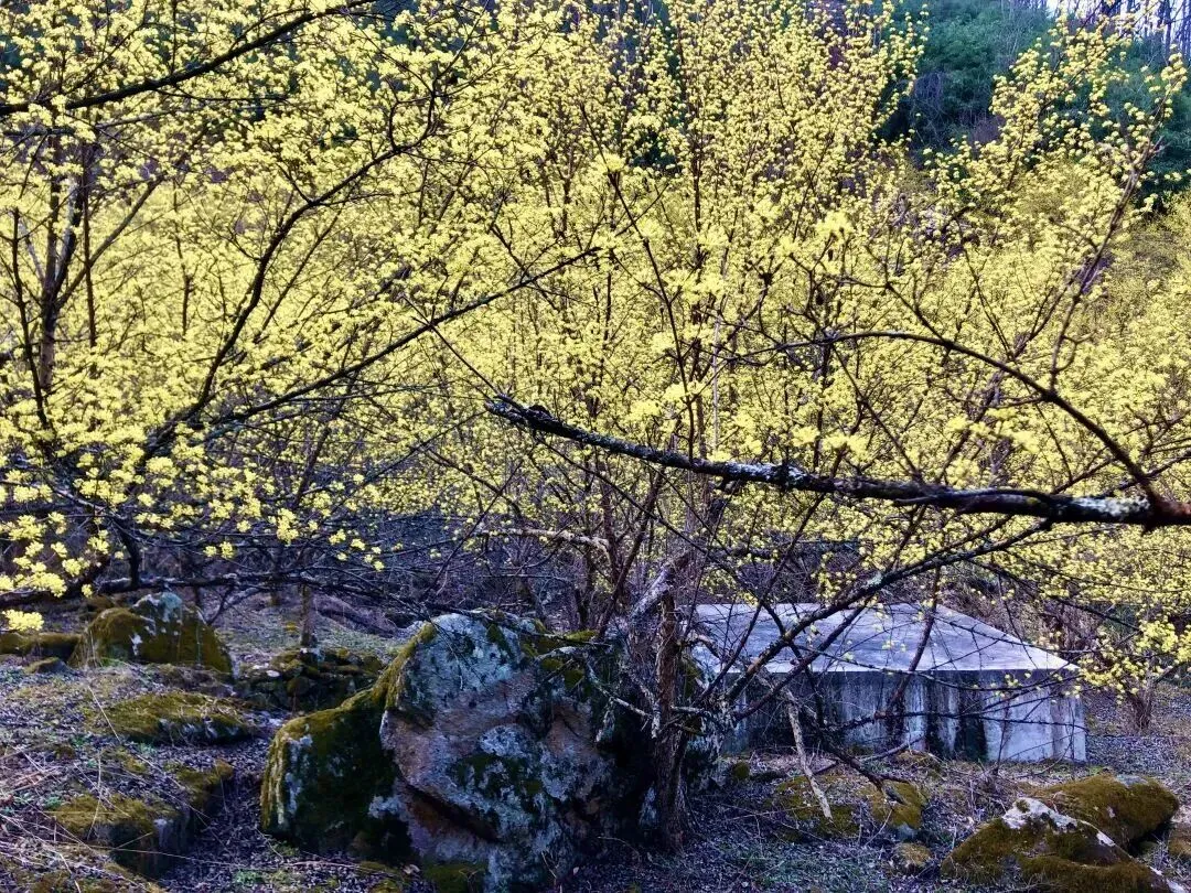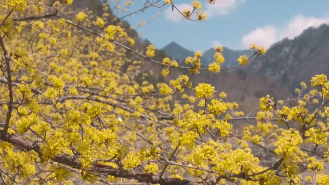 在佛坪,山茱萸有着两千多年的栽培历史。它不似梅花孤傲,不如桃花娇艳,只是静静地开满枝头。那一簇簇、一串串金黄色的伞状小花,密密匝匝地占满所有枝条,将一面面坡、一座座山浸染成金黄色的海洋。