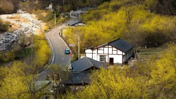 出片位:“知乎桥”的小桥流水、口袋公园的绿色森林,随手一拍都是大片。山茱萸花与蓝天白云相互映衬,渲染着山涧、沟壑与农舍。