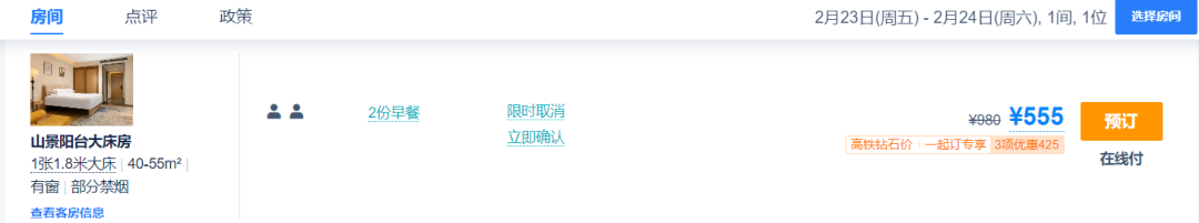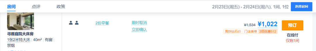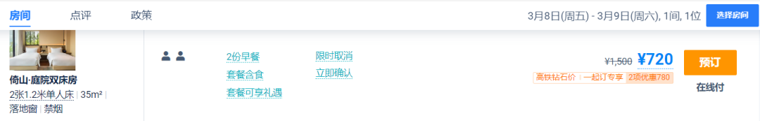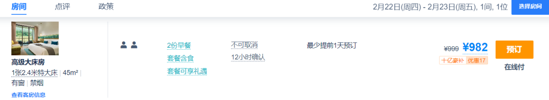 ✅2天1晚住高级房,某ota平台,同样是高级房,光是1晚的裸房价就要近1000元。我们的套餐更优惠,再不囤就住不上啦!!