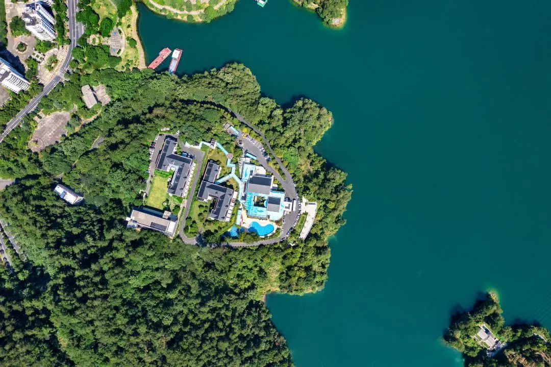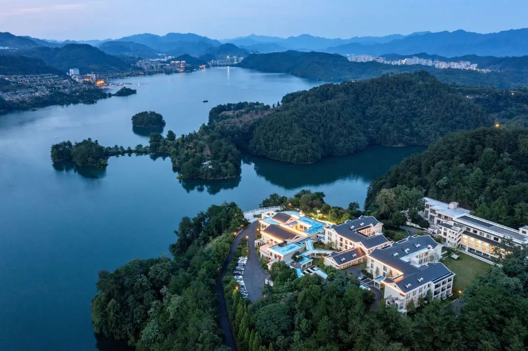 酒店地处千岛湖主城区内,建筑面积约1.37万方,三面环湖,依水而建。