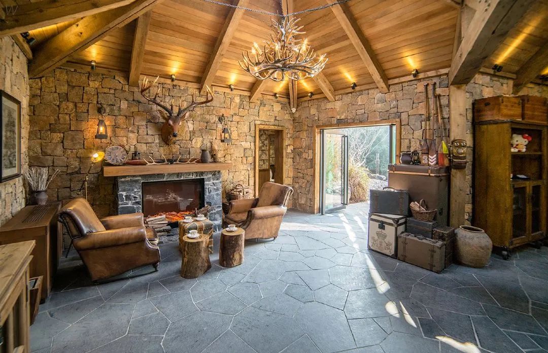 从自由家的入口处,大型的变形金刚似的集装箱,到接待中心复古的壁炉、铁皮箱,有质感的沙发、吊灯,欧式乡村风散发出慵懒随性的气息,让人一下子就放松下来。