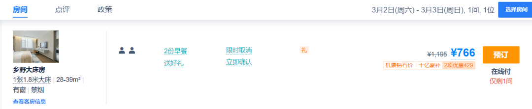 ✔️3天2晚999的套餐,比ota相比便宜了好几百,性价比更高!未预约可退,趁便宜可以先囤一套。