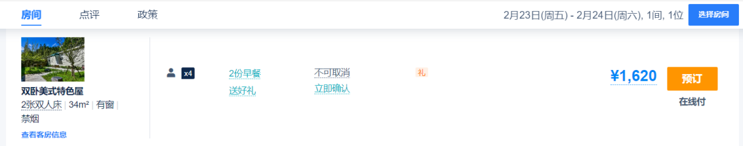 ✅同款房型:双卧美式特色屋,在某ota平台上单晚1600+,算下来我们的套餐便宜了800+,相当于买一晚送一晚!这个价格错过不再有,赶紧囤~