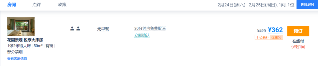 此次套餐房型:花园景观大/森林景观双床房,2天1晚339起,周末清明不加价!我们的价格真的很划算!