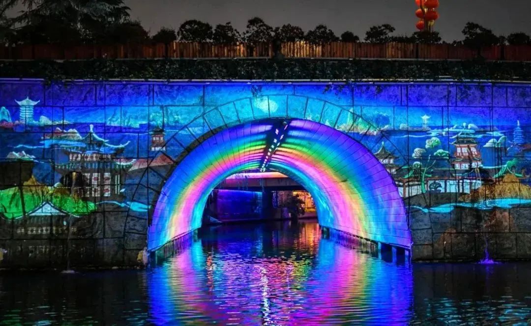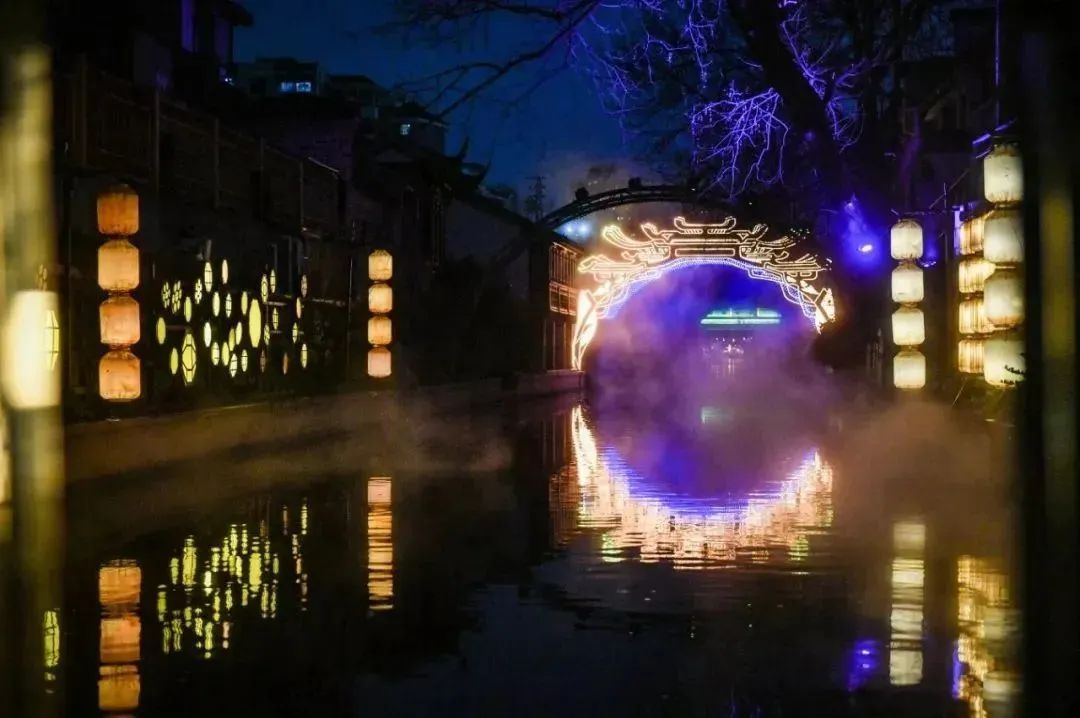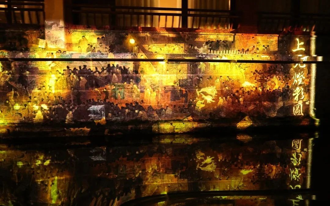 两岸张灯结彩、光影流转