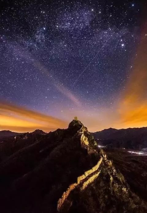 跨峻岭,穿荒原,横瀚海,经绝壁,纵横十万里。望不断长龙烽垛,雄关隘口,犹如玉带明珠,点缀成江山锦绣。起伏奔腾,飞舞盘旋,太空遥见,给世界增添壮丽奇观。”
