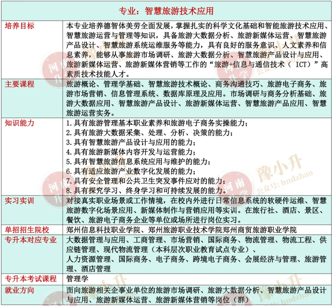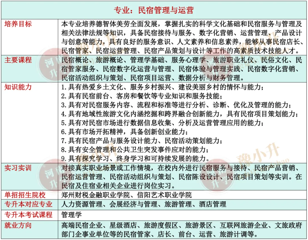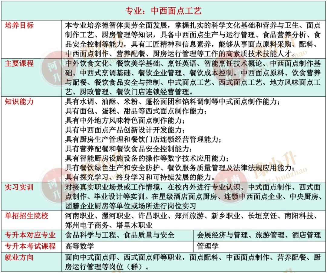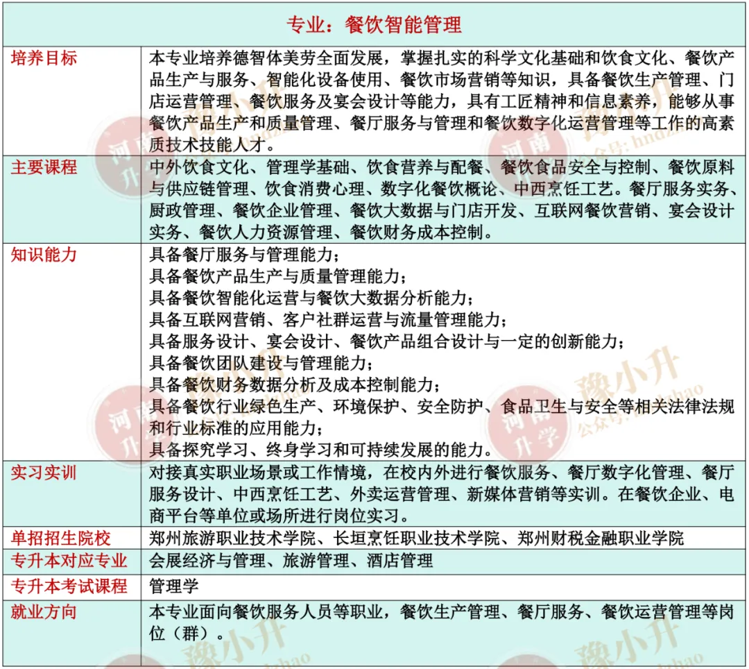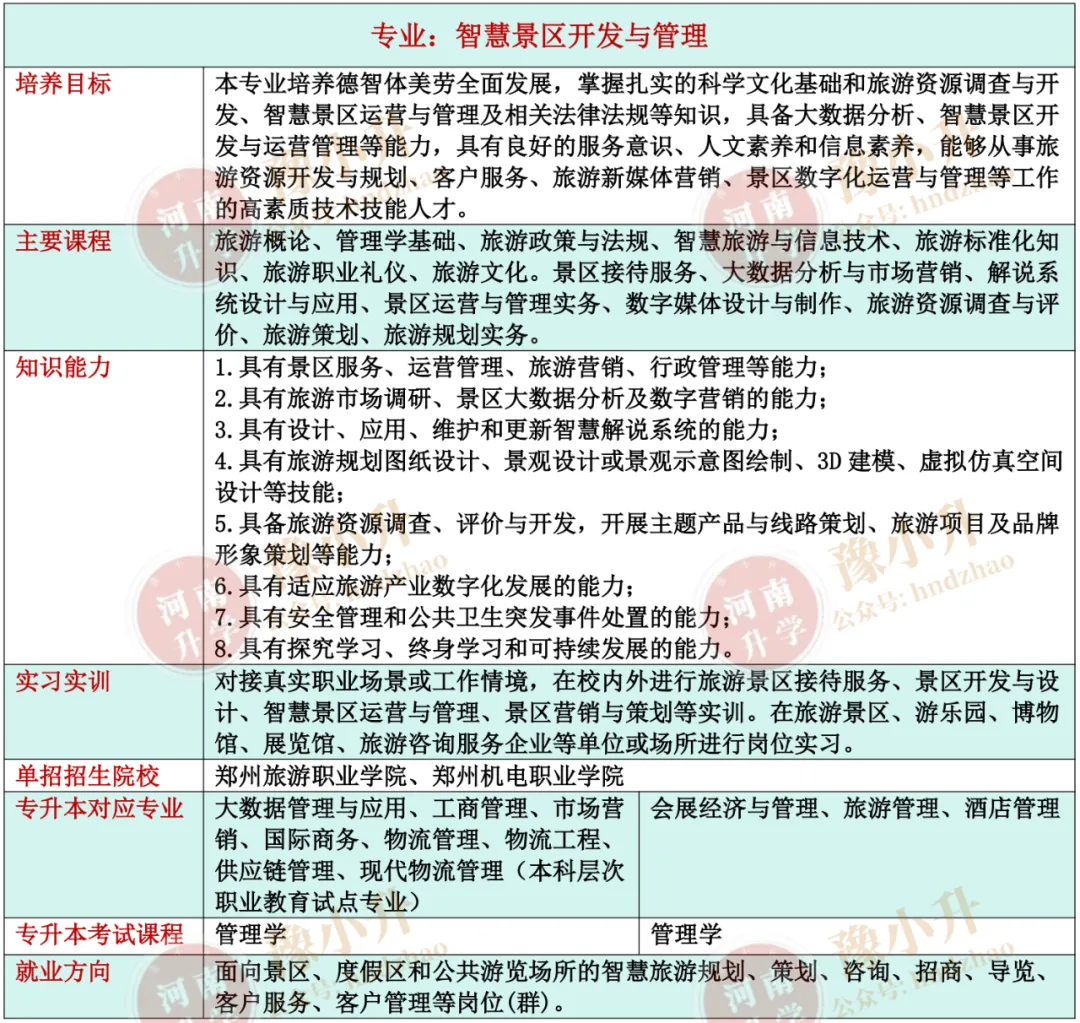 河南单招专业详解 旅游大类(含旅游类、餐饮类)各专业招生院校、升本专业、就业方向、开设课程、培养目标