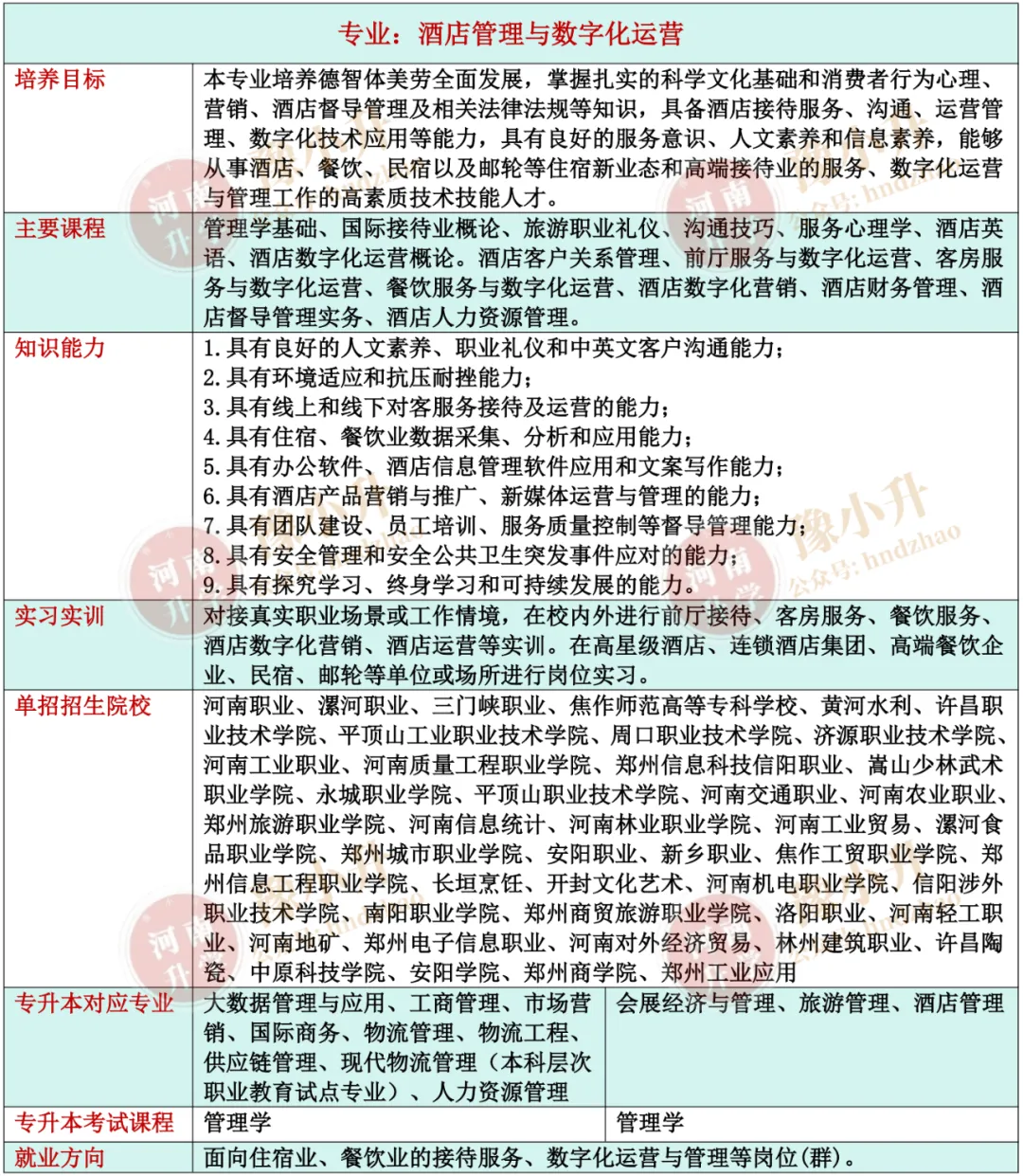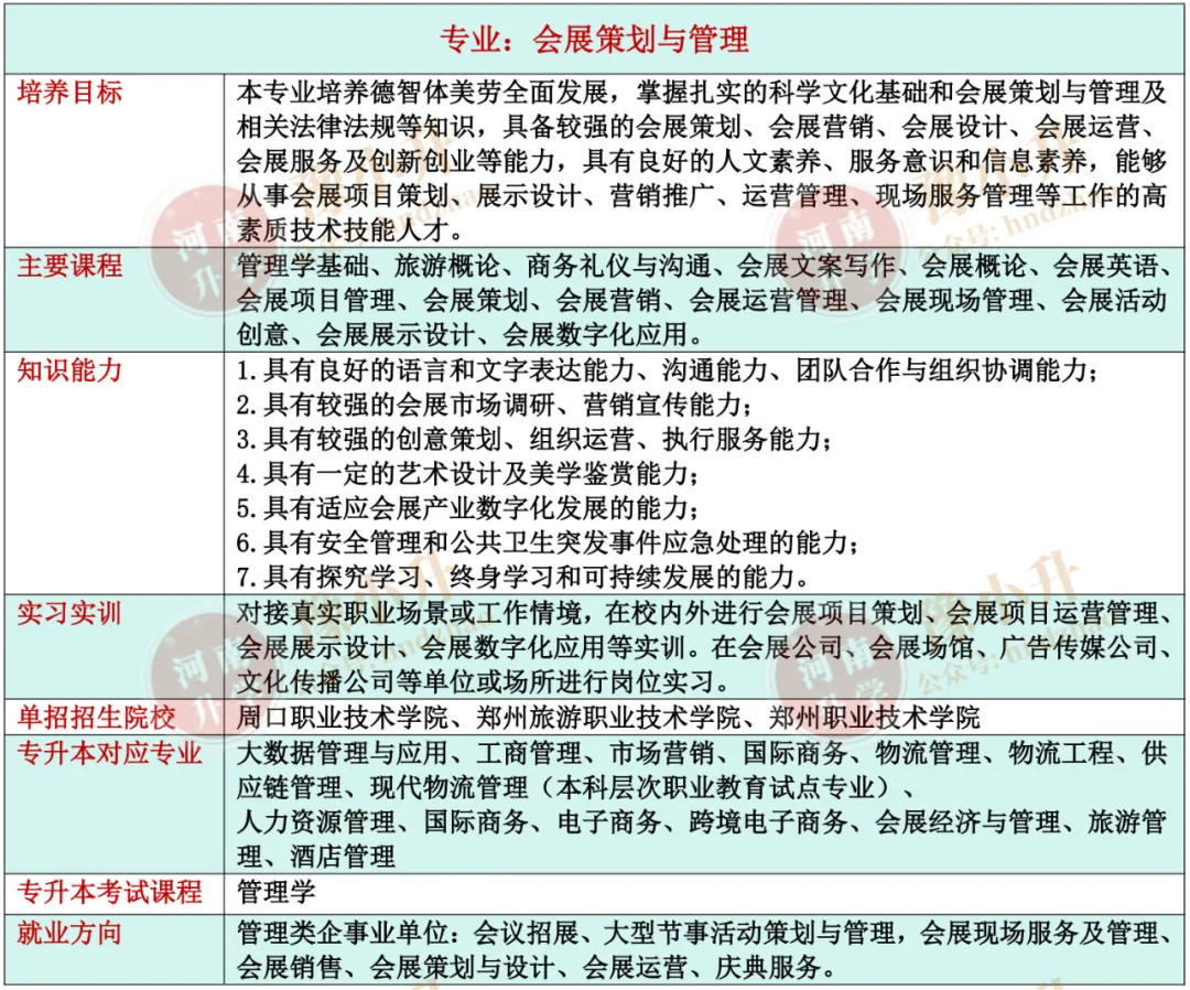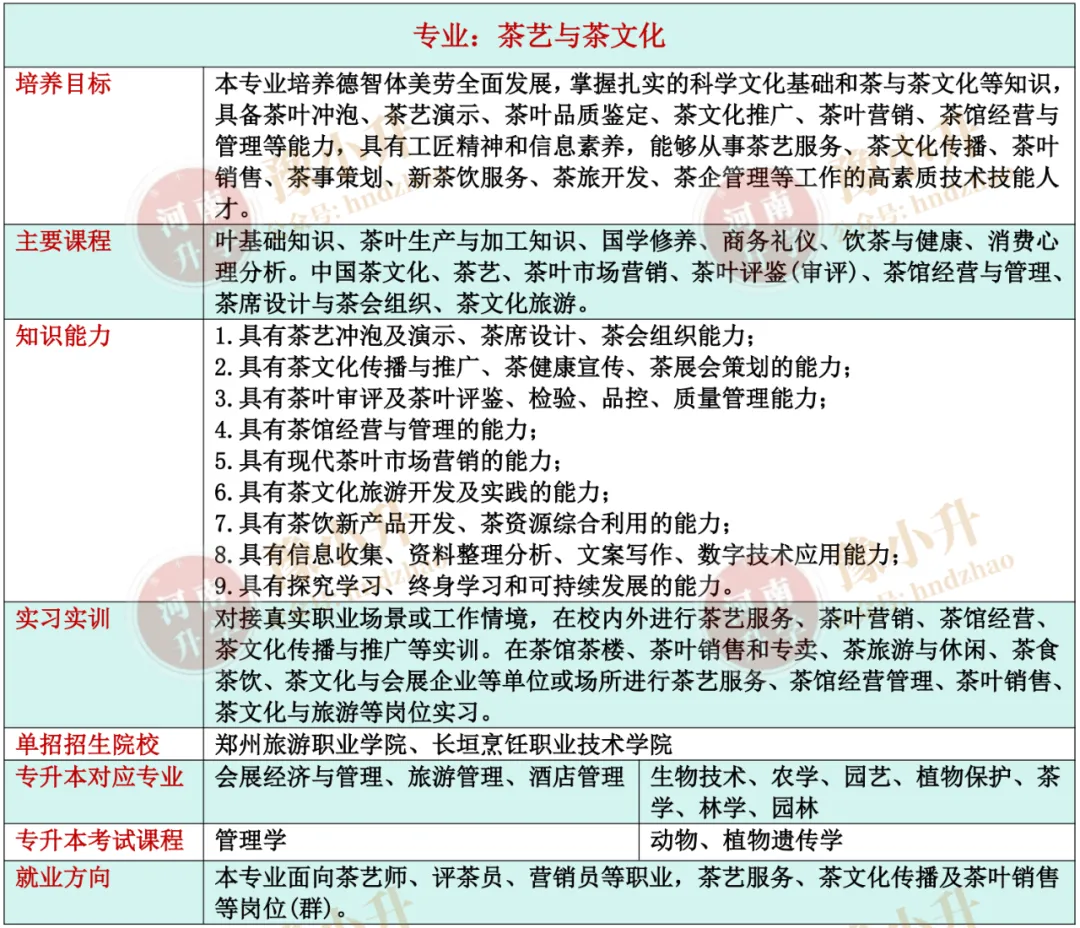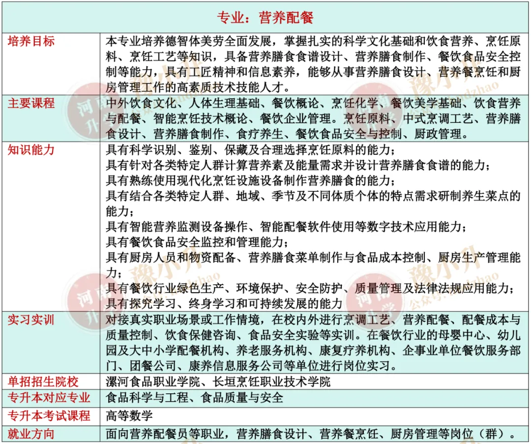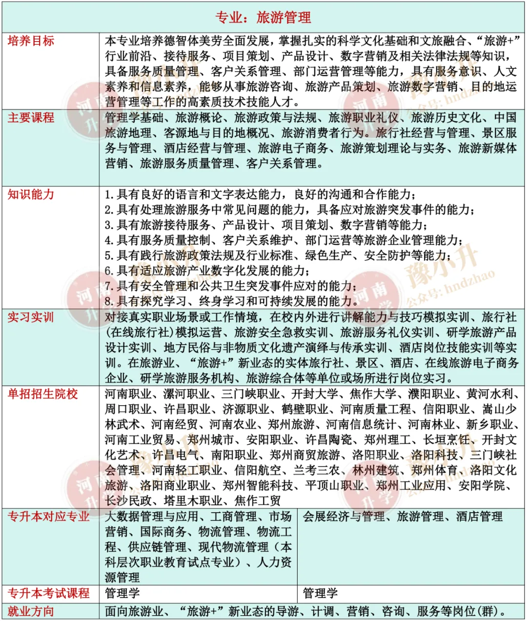 河南单招专业详解 旅游大类(含旅游类、餐饮类)各专业招生院校、升本专业、就业方向、开设课程、培养目标