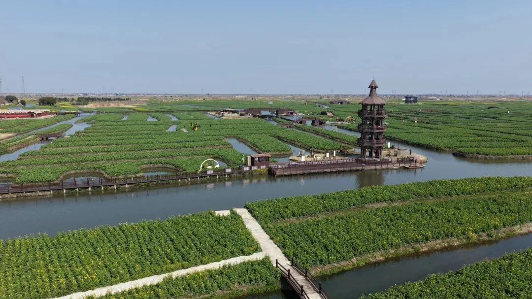 此刻的千垛景区,虽不及盛花期那般波澜壮阔、满目金黄,却也别有一番“星星点点缀春垛”的风味。