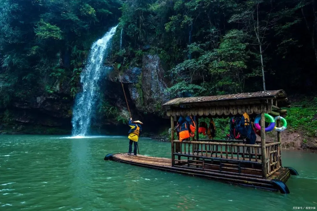景区面积15平方公里,峡谷全长约5公里,属青年期丹霞地貌,集湖、溪、山、谷、岩、峰、沟于一体,分布丹霞峰丛、岩槽洞穴及水陆景点。因九条山涧溪水汇入潭中而得名,以幽谷水巷、千米水上一线天和独特的日夜双游体验著称,有 “泰宁丹霞山水微缩明珠”“水上丹霞精品” 的美誉。景区日游项目包含乘竹筏穿越千米水上一线天、漫步临水栈道等;夜游为中国首个“行浸式”水上峡谷夜游项目,采用发光气垫船结合声光电技术呈现光影景观,推出丹霞峡谷灯光秀。