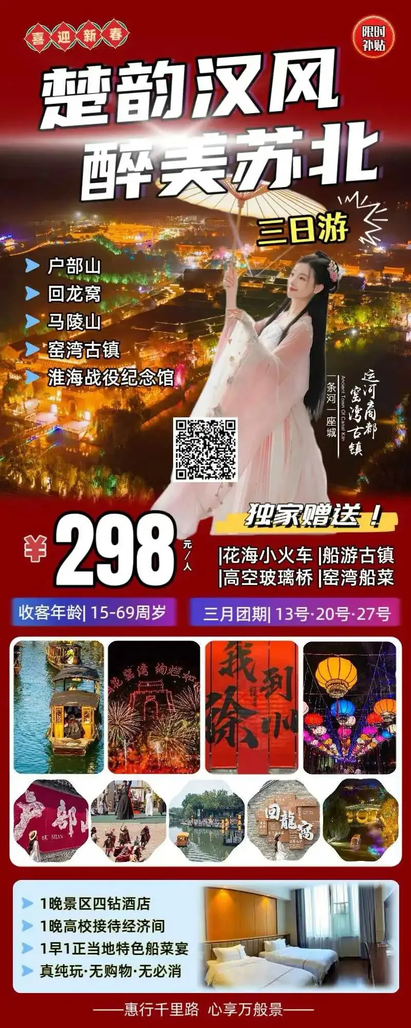 徐州旅游|洛阳起止:3月-徐州回龙窝+户部山+马陵山+窑湾古镇+淮海战役纪念馆3日游298元,一价全含,每周五发团,真纯玩无购物无必消