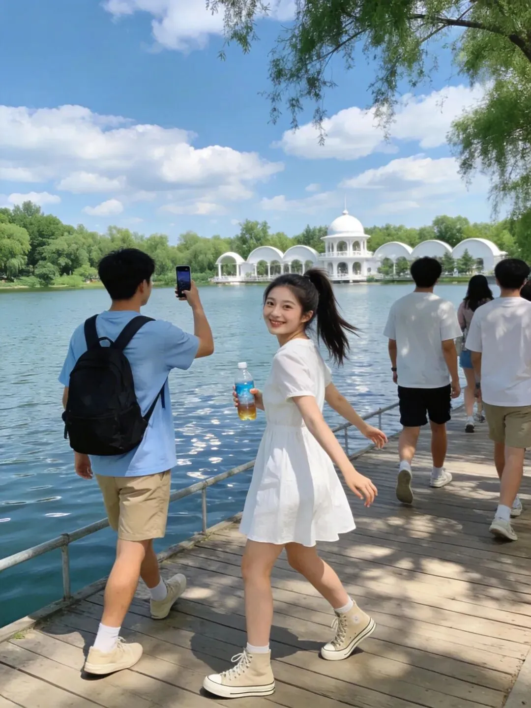 在湖畔漫步,享受悠闲时光