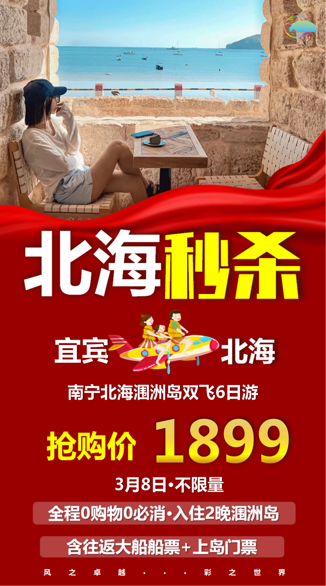 3月8日宜宾✈南宁北海涠洲岛特价秒杀