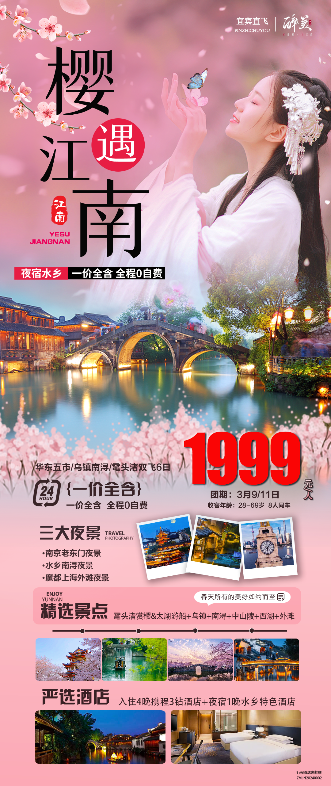 特惠1999!!3月9/11号 宜宾直飞华东【樱遇江南】六日游