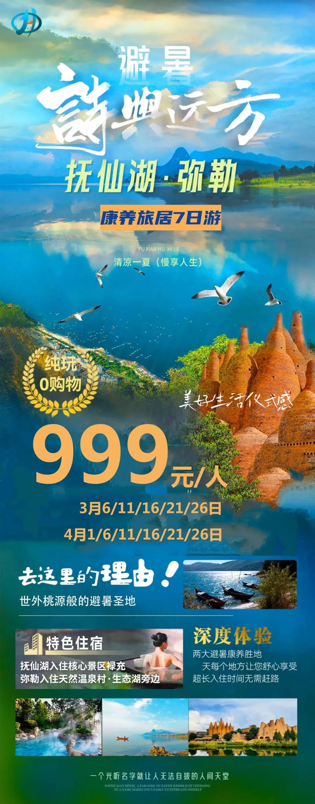 宜宾出发【抚仙湖+弥勒】避暑康养7日旅居舒适游