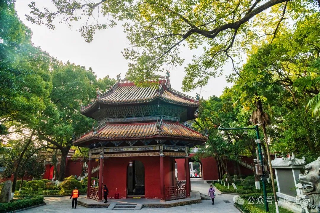 南岳庙主轴线上由南至北共分九进,庙内两侧东有八座道观,西有八座佛寺。