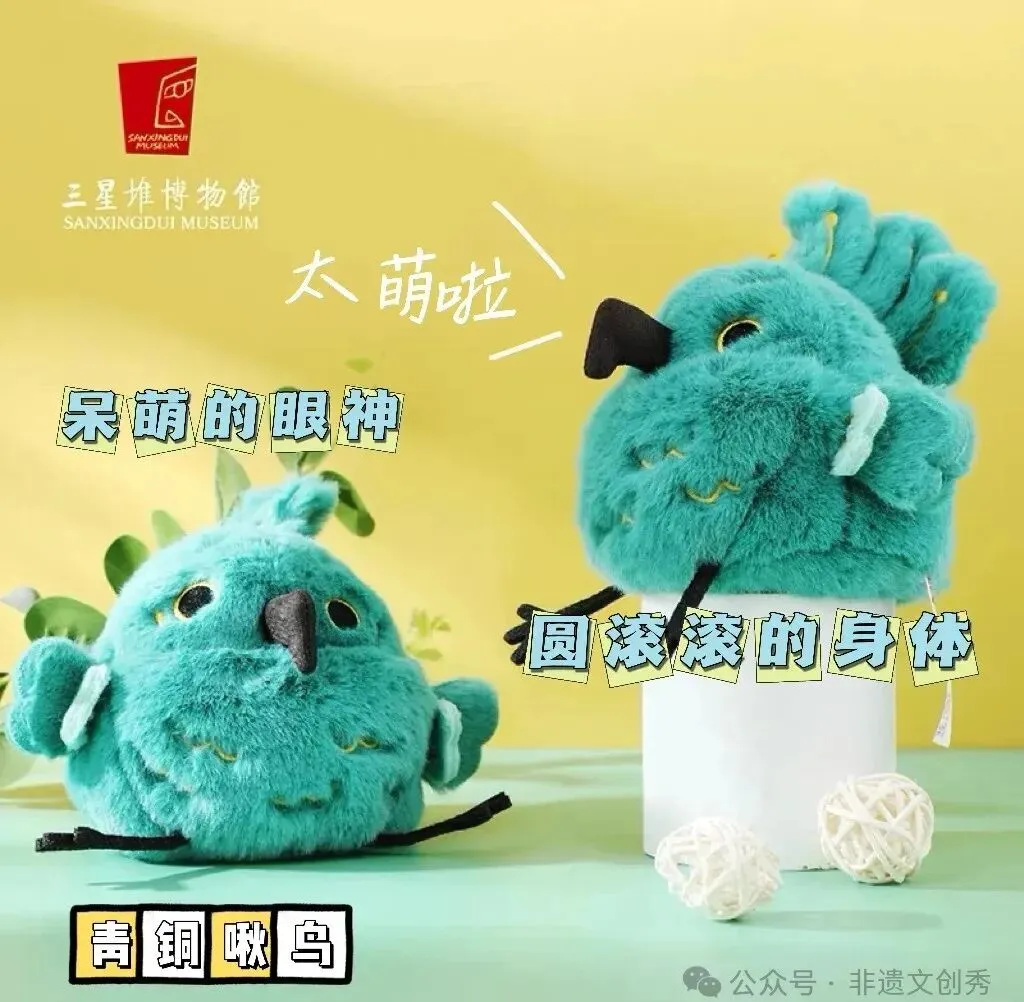 三星堆的“啾啾鸟”毛绒玩偶,原型是青铜神鸟。他们把原本修长的文物形象做得胖乎乎、圆滚滚,保留了头冠等关键元素,又符合年轻人对“萌”和“解压”的审美需求。这叫在尊重文化的基础上进行二次创作 。