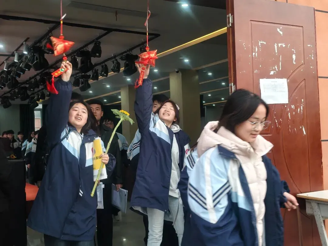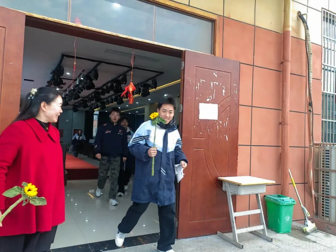 仪式上,校党总支书记邵华亮、校长李梅、副校长余鹏飞,为同学们送上殷切嘱托与美好祝福,鼓励大家沉着应考、全力以赴、不负韶华。李梅为学子们送上向日葵,寓意向阳而生、一举高中,温暖而充满力量。