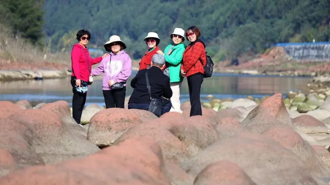 春暖花开,悦来镇石鸭子滩景点游人如织