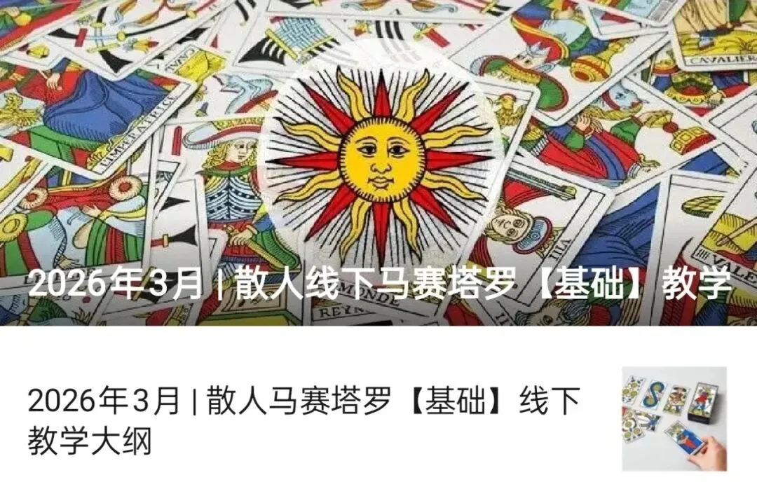 如果我们也对这种结构逻辑 + 快速实战的方式感兴趣,今年3月我也会参加散人老师的《2026年3月|马赛塔罗【基础】线下教学》,欢迎大家一起来做同学!