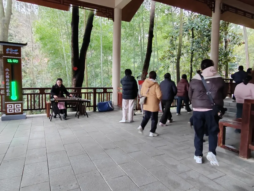除门票优惠外,景区内精心设置的蔬菜爱心打卡装置成为热门拍照点,创意十足的设计吸引游客驻足留影。九天洞排队入口处,古筝表演悠扬奏响,为春日游览增添雅致韵味,让游客在山水间感受传统文化魅力。