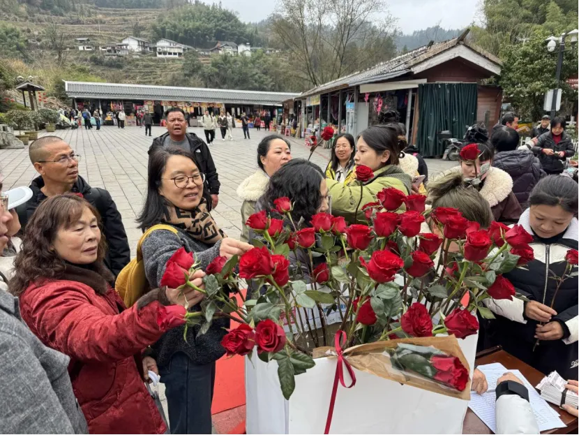 上午10 时至11 时,活动迎来暖心高潮,索道工作人员手捧玫瑰花,逐一为女性游客送上节日祝福,娇艳的鲜花承载着真挚心意,让女神们笑意满满。针对带团前来的女导游,景区还特别准备了专属大礼包,致敬她们的辛勤付出。温情不止于游客,活动当天,公司向全体女性员工送上节日问候与祝福,感谢她们在岗位上的坚守与奉献,让温暖在园区内传递。