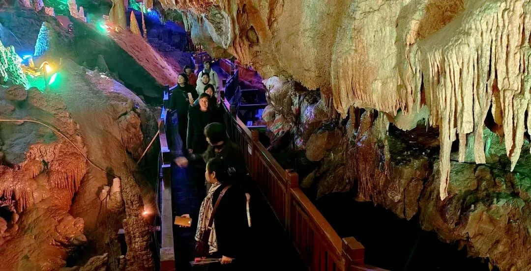 上午8时30分许,神农源景区迎来了首个来自上饶市的女同胞旅游团队。游客们刚步入服务区,便惊喜地收到了景区工作人员递上的一束精致花朵和一段深情的节日祝福。这一意外的惊喜让在场的女同胞们倍感温馨,纷纷拍照留念,表达对景区的感谢。手捧花束,游客们快乐地走进神农宫,洞内温暖如春,光怪陆离的奇异景色与和谐悦耳的飞瀑流泉交相辉映,仿佛置身于人间仙境。游客们一路走一路拍照,陶醉在美景之中。来自上饶信州区的张女士表示:“今天不仅领略了神农源的魅力风景,还收获了节日祝福,感觉心情美美的,这个三八节过得非常开心和有意义。”