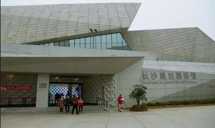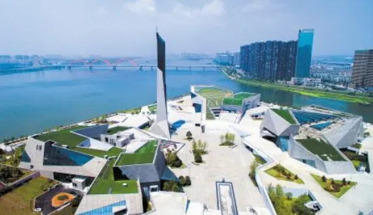 长沙市“三馆一厅”指长沙市图书馆、规划展示馆、博物馆和音乐厅,项目坐落于浏阳河与湘江交汇处的新河三角洲。