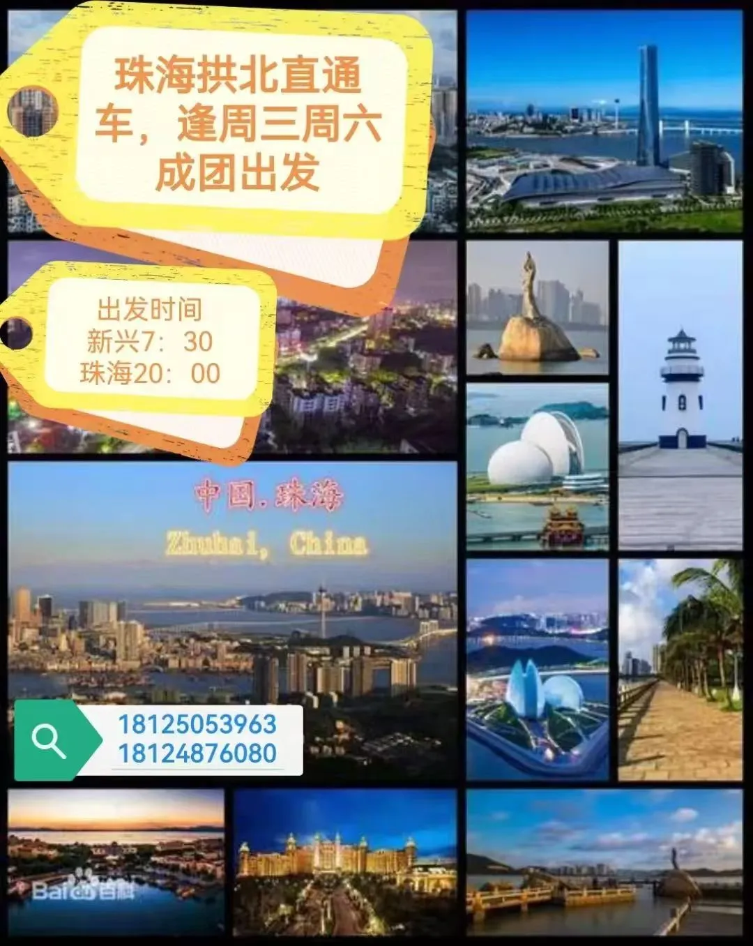 早上7点30新兴文化广场舞台后面出发,晚上19:30集合!20:00分返程!!拱北口岸上下车!!!