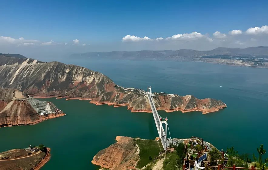 第四站:刘家峡水库高原明珠名不虚传!这里的黄河水不是黄的,是绿的!站在大坝上看黄河水被拦截成湖,两岸山势险峻,水面波光粼粼。最近还开通了水上飞机和快艇,胆子大的一定要试试,从空中俯瞰,那种震撼感只有亲身体验才知道。对了,这里的刘家峡鲤鱼是必吃的,肉质细嫩,没有土腥味。