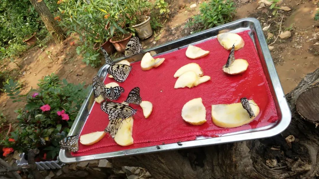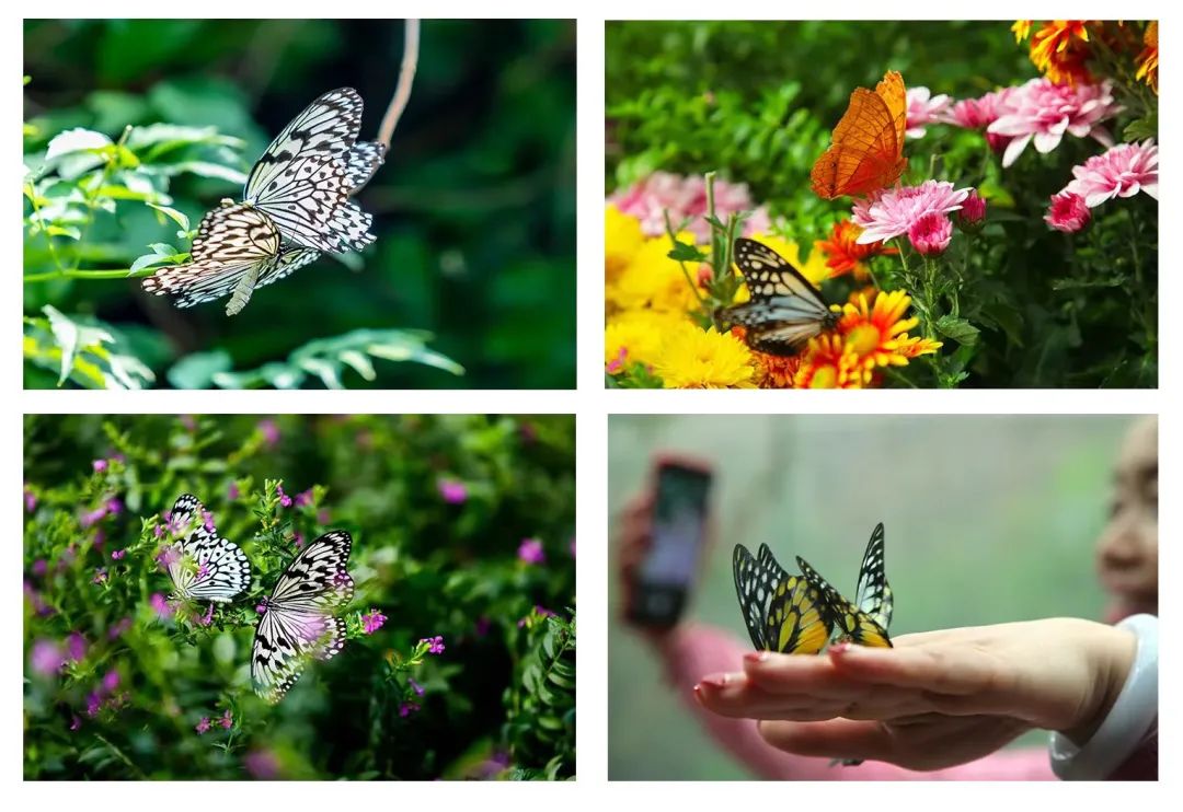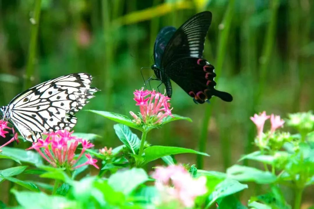 景区三面环山,植被丰富,中间谷底贯穿一条溪流,为原始生态蝴蝶谷,有丝带凤蝶、枯叶蝶、麝香凤蝶等世界著名种类多达50种,蝴蝶谷每一处建筑都巧妙地利用了这里的原始山水及植被,使原始的生态资源得以充分利用和保护,园内的小桥、流水、幽谷、鲜花、彩蝶以及各类原始植被,蝴蝶谷构成了一个幽静、自然的世外桃源。