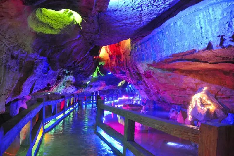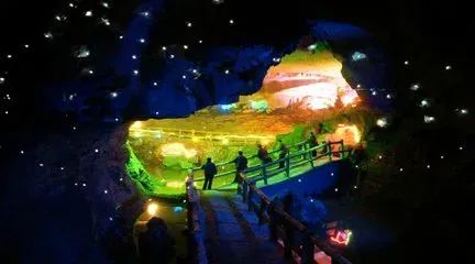 从蝴蝶谷出来后,乘坐一页扁舟,进入【萤火虫水洞】,成千上万的萤火虫附于钟乳洞壁之上,犹如晴朗夜空中繁星闪烁!看着漫天的萤火虫,仿佛又回到儿时年代,使人浮想联翩、流连忘返。!