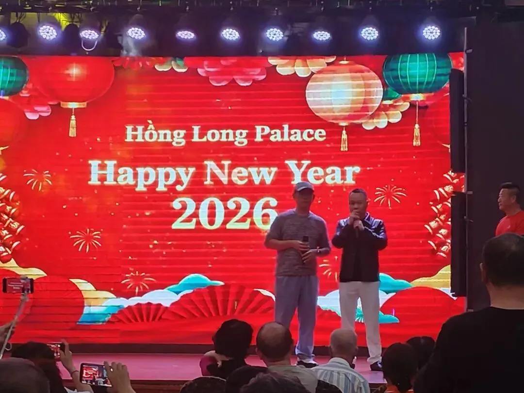 晚上8点整,主持人站在悬挂有用越语撰写的“新年联欢晚会2026“横幅会标的舞台中央,用流利响亮的中文普通话,宣布由越中旅行社联合举办的马年春节晚会开始。首先登场的是越南旅行社和中国国际旅行社负责人,他们分别发表了热情洋溢的新年致词。既是答谢中国游客蛇年的大力支持,又是希望马年的中国游客奔腾不息源源不断!