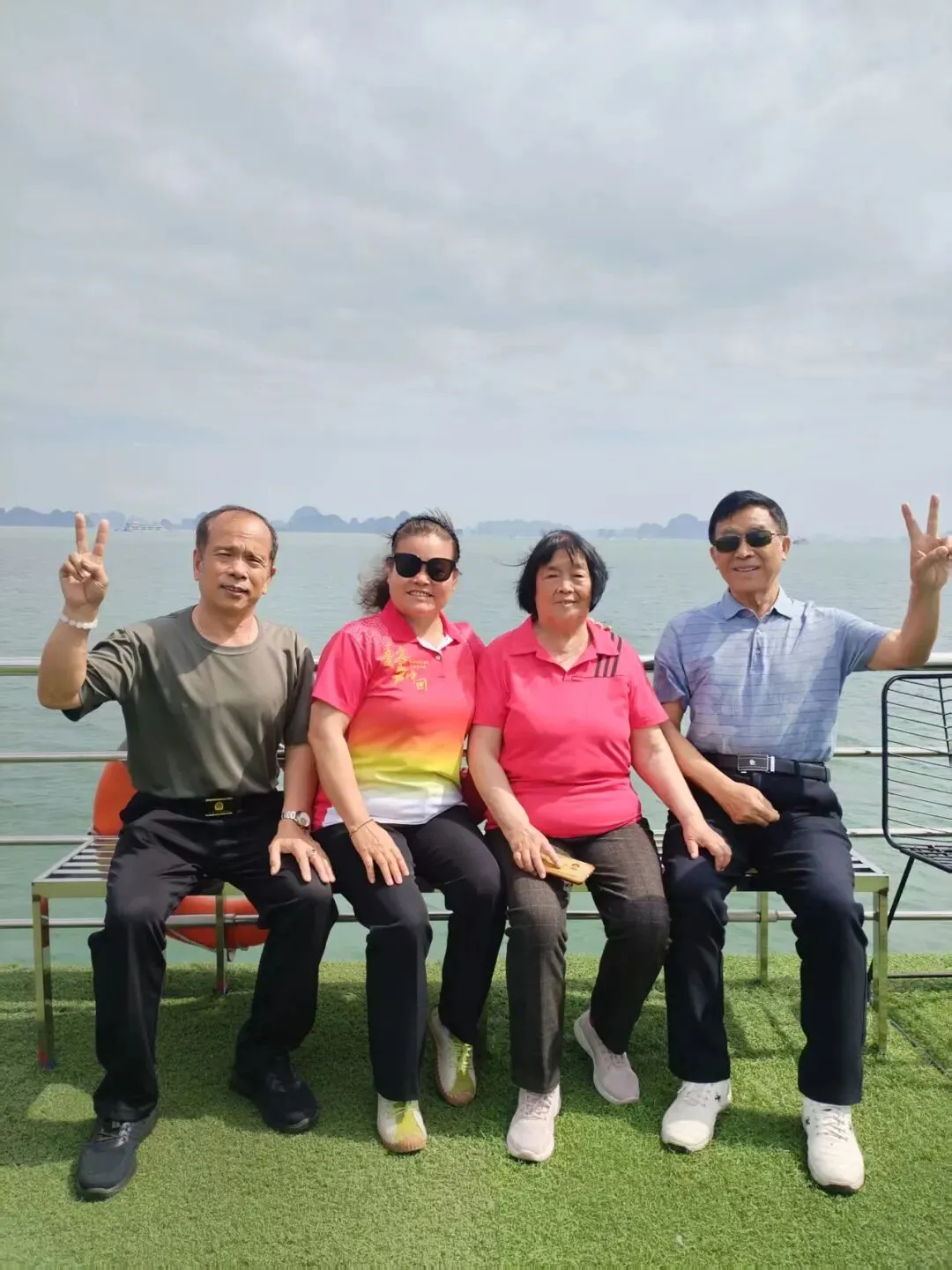 上午11点,我们通过中国边防检查站礼貌且严肃的检查后,于中午在广西防城港东兴口岸顺利出关。在跨过北仑河桥中央中越分界线时,一脚踏两国,打卡留念。过桥几十米就是越南芒街海关。虽说是集体落地签,但也要耐心等上两个多小时。导游强调过关注意事项后,就自由活动了,有的拍照,有的在逛免税店。令人吃惊和热议的是,堂堂的国门,上卫生间竟收费七千越南盾(约合人民币2元)。下午3点,持已签护照过关时,同行一游客因安检查出背包内有水果而被拒。他果断地分给大家,匆匆消灭完才允许过关。出关后,由一位带绿帽子越南男士(男子带绿帽是致敬英雄、可靠、实用)在指挥分流出关人群。换乘越南中巴,又配上一位会说中文的越南导游,向广宁省下龙湾进发。中途服务区小憩,简陋的卫生间,半截墙只能挡住人的腰部以下。当我们持杯寻找热水时,服务区小卖部一男子招手示意有热水,我们几个兴冲冲跑到那里,他伸出食指比划着用不流利的中文说,一杯热水一万(合人民币3元),我们瞠目结舌,唏嘘不已!