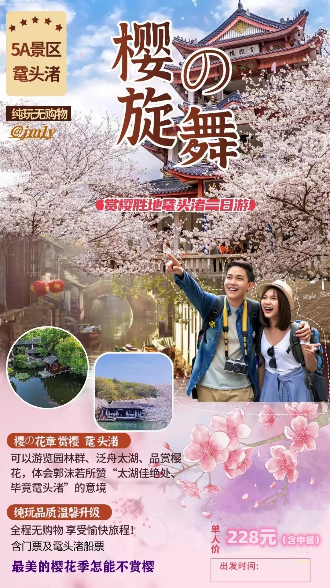 作为世界三大赏樱胜地之一,鼋头渚素有“太湖第一名胜,中华赏樱胜地”的美誉,这里有3万多株、100多个品种的樱花树。漫步樱花林中,入眼尽是粉白烂漫,如锦繁花中有蜜蜂在其间忙碌,动静相宜,带来无限春日的生机与活力。