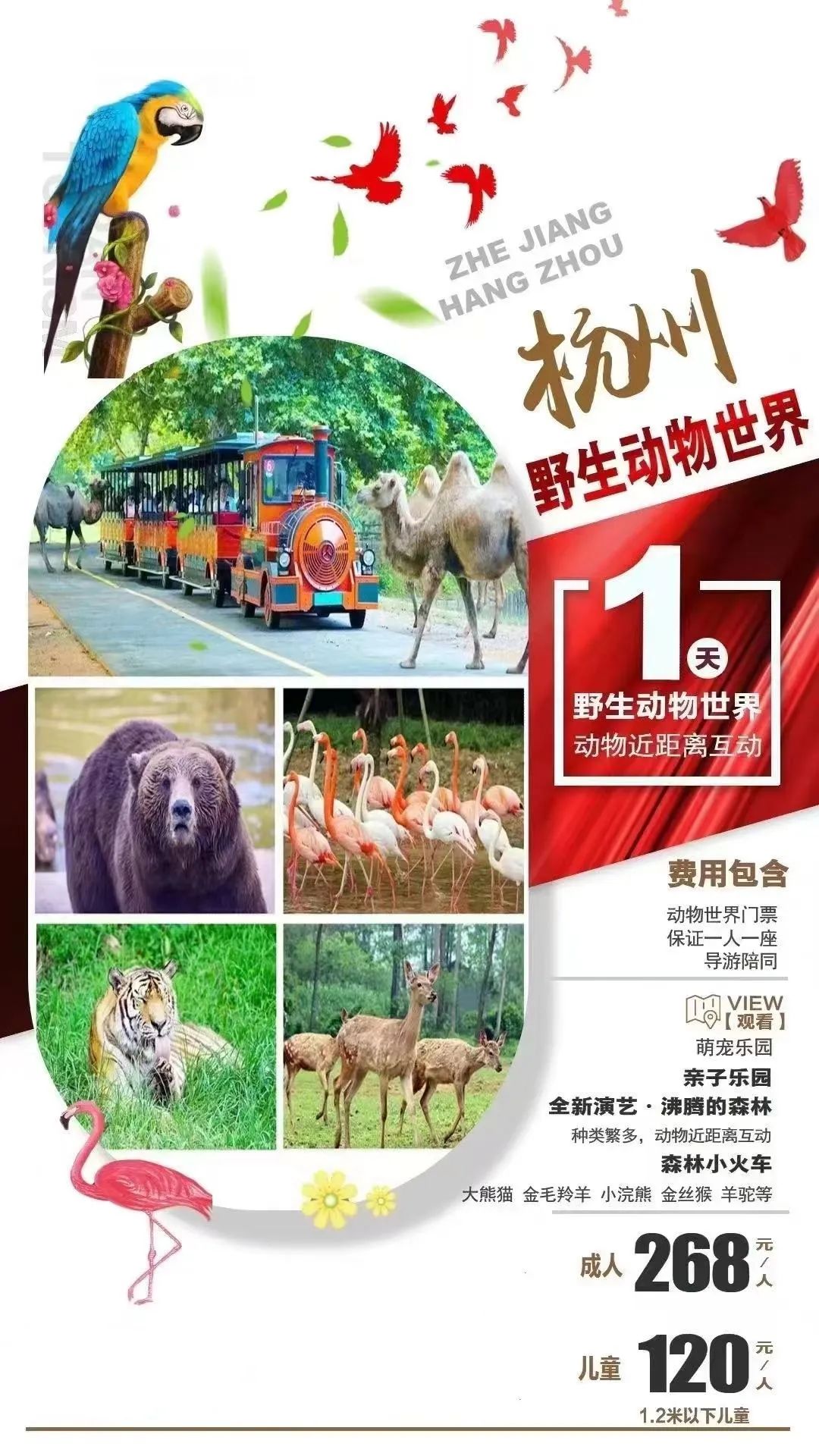 杭州野生动物世界为国家AAAA级旅游景区,园区设有步行区和车行区两大游览区。目前,园内生活着300多种,1万多只世界各地珍稀野生动物。