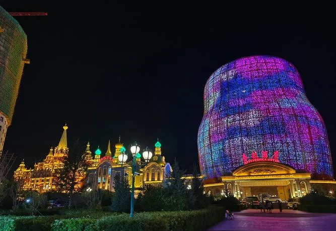 套娃广场被很多人吐槽商业化,但这个吐槽本身就暴露了一个误区,因为满洲里的商业化不是为了骗游客钱,是这个城市天然就靠边境贸易活着,套娃不是摆设,是几十年来中俄贸易的文化符号,你看那些巨型套娃,五颜六色的俄罗斯风情建筑,夜晚灯光一亮,整个广场变成童话世界,这种视觉冲击不是刻意营造的浪漫,是边境城市用自己的方式在说"我们就是这么活的"。