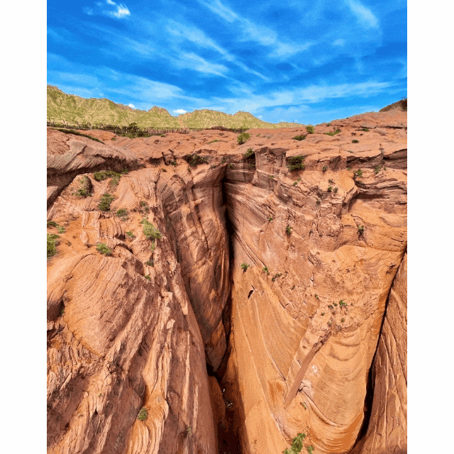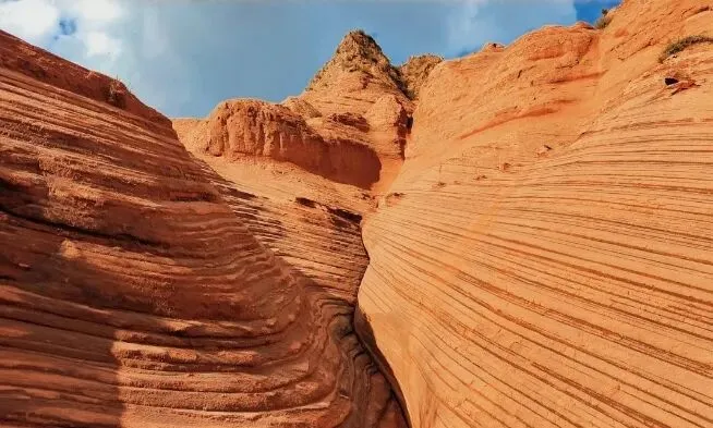 媲美美国羚羊谷,色如炯丹,灿如明霞。红色砂砾岩经过数千年甚至上亿年,形成了孤立的山峰和陡峭的奇岩怪石。