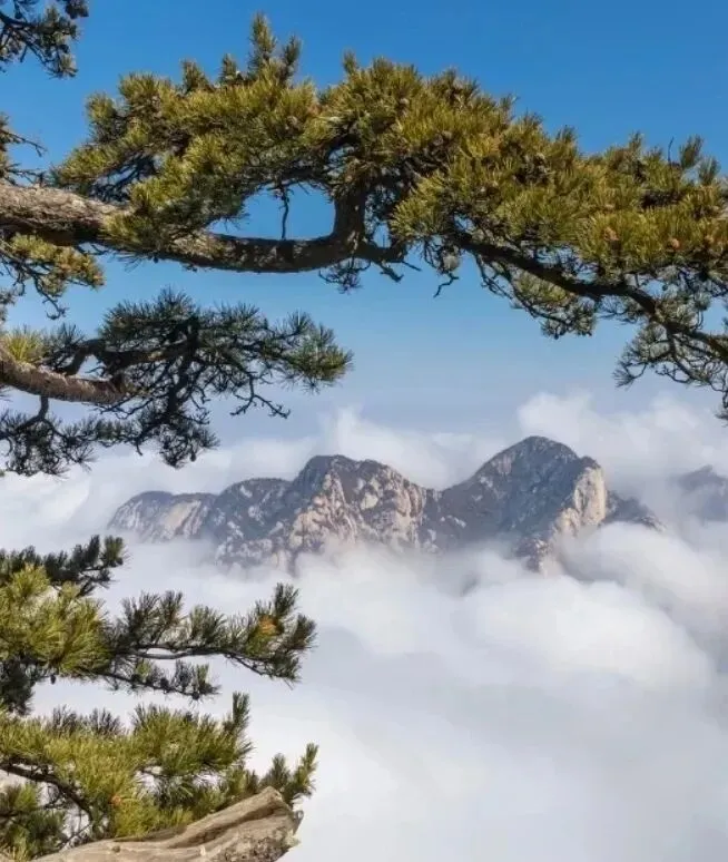 这里的华山险峰冲破云海;