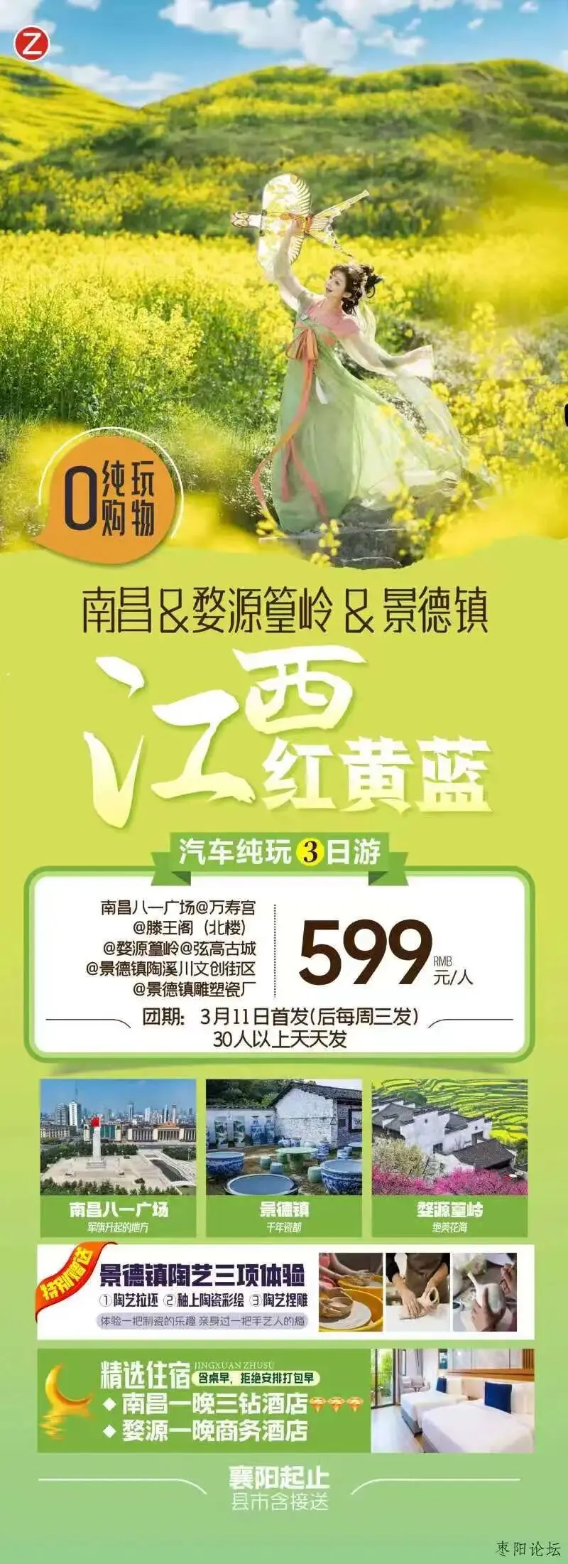 【旅游线路】襄阳起止 南昌+婺源+景德镇纯玩3日游
