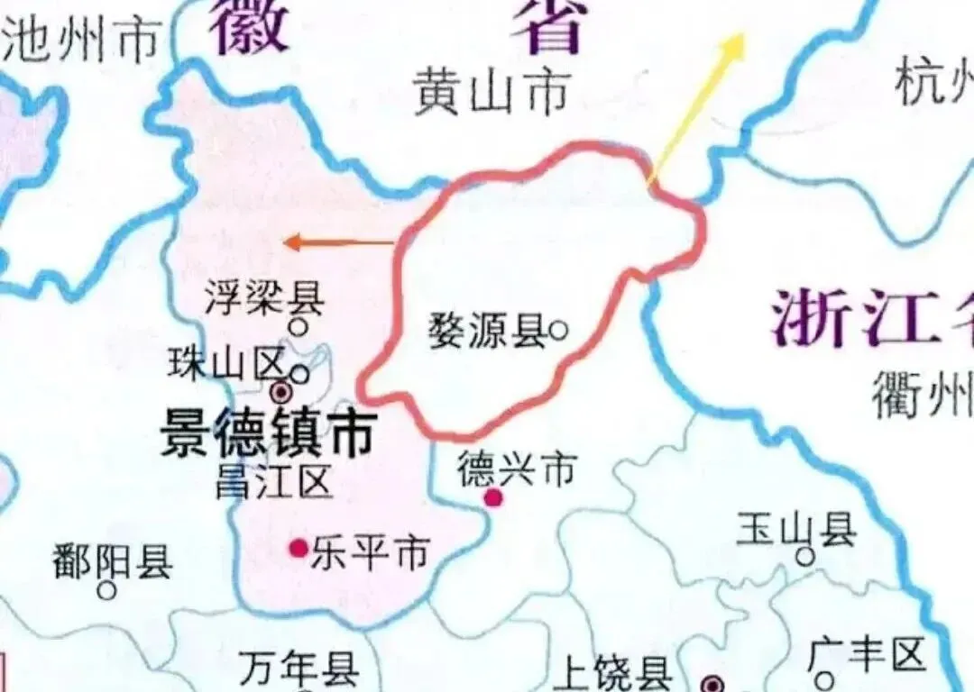 东边挨着衢州,西边靠近景德镇,北边连着黄山、歙县,南边靠近三清山、德兴。