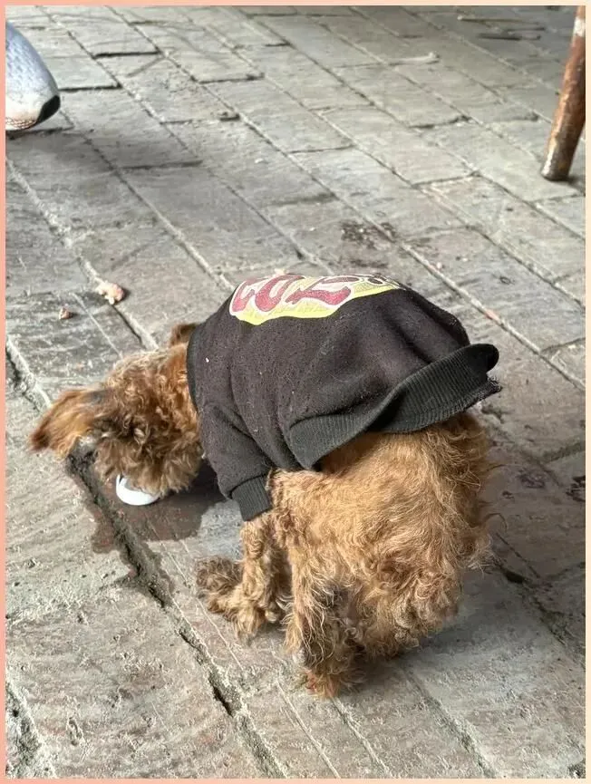 不是因为狗穿衣服,而是因为那件衣服——洗到发灰、边角起球,背上的印花图案已经龟裂,但每一针每一线,都在诉说:它曾经被人好好爱过。