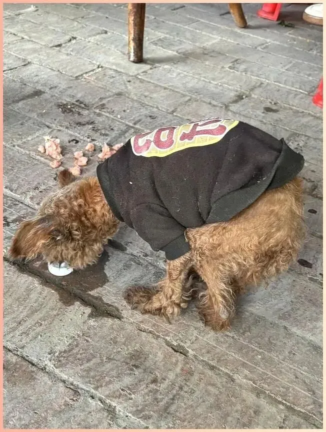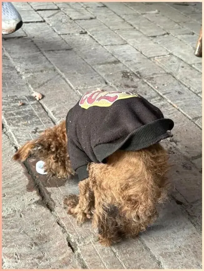 不是因为狗穿衣服,而是因为那件衣服——洗到发灰、边角起球,背上的印花图案已经龟裂,但每一针每一线,都在诉说:它曾经被人好好爱过。