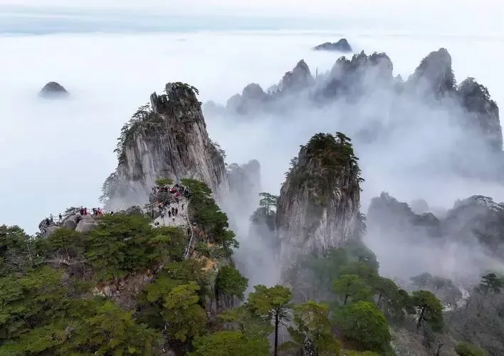 五岳归来不看山,黄山归来不看岳。这里群峰竞秀,奇峰挺立,怪石作态,美的如诗如画。这里的日出奇松怪石、云海温泉,俗称黄山五绝,令海内外游人叹为观止。