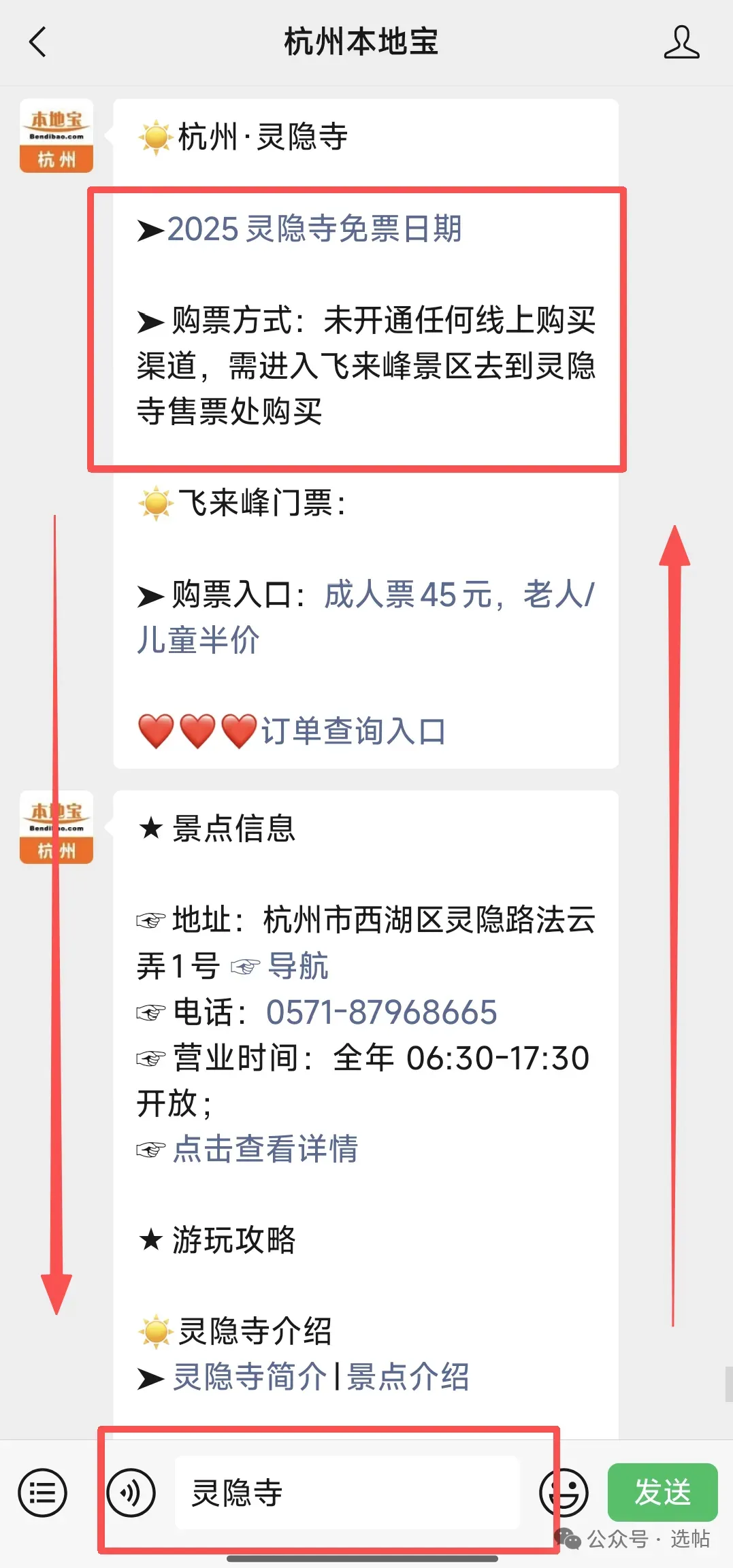 预约入口:在【杭州本地宝】的微信聊天对话框回复【雷峰塔】获取雷峰塔预约购票入口、地址交通指南、游玩攻略等