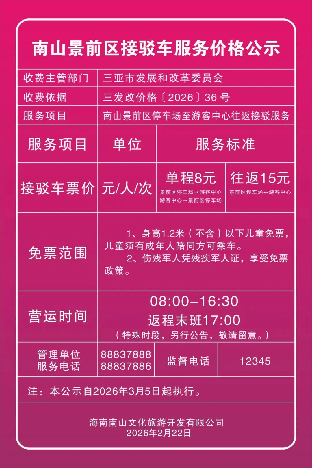 温馨提示:免费公交线路若有调整,景区将另行通知,可关注“海南南山文化旅游”公众号,以便及时获取最新信息。