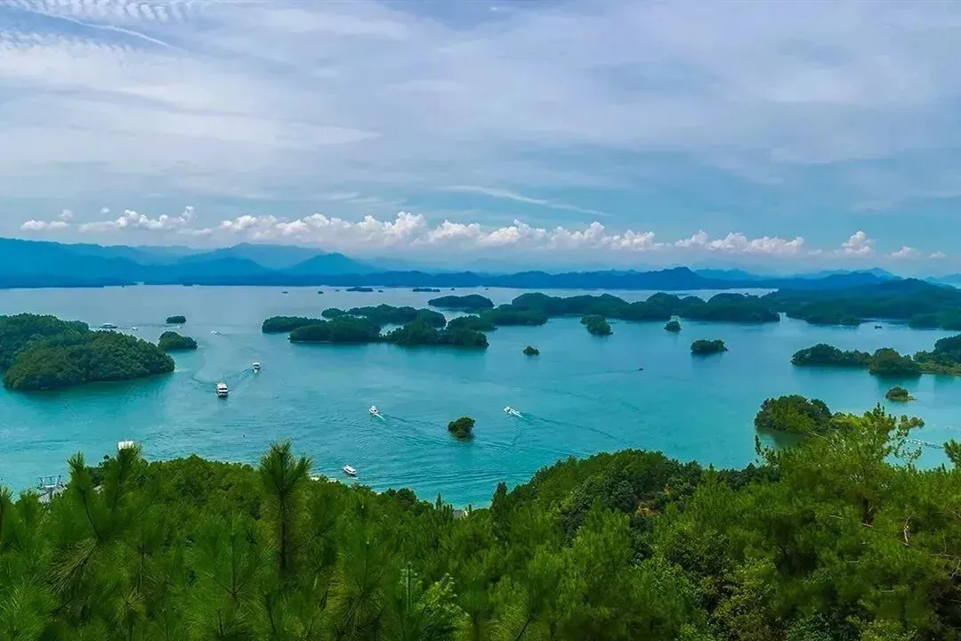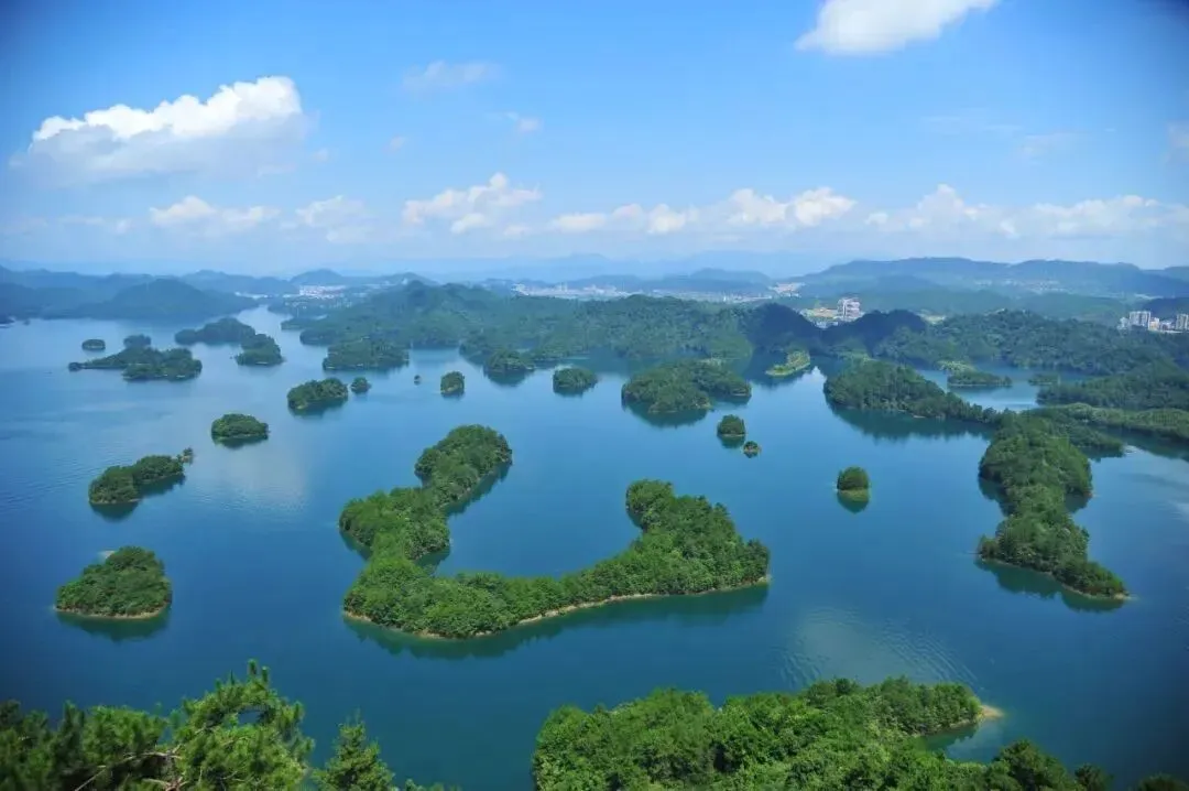 千岛湖位于浙江省杭州西郊淳安县境内,是国家首批5A级旅游区,中国最大的森林公园。于1959 年为建造新安江水电站而筑坝蓄水形成的人工湖。因其山青、水秀、洞奇、石怪而被誉为“千岛碧水画中游”。湖区面积573平方公里,湖中拥有形态各异的大小岛屿1078 座,平均水深34米,能见度9-14米,属国家一级水体,因碧水呈奇、千岛百姿、群山叠翠、峡谷幽深、风光旖旎被原新华社社长穆青赞誉为“天下第一秀水”,整个湖区分为东北、东南、西北、西南、中心五大湖区。并以其自然风光、人文景观、动物野趣、休闲户外的丰富多彩而享誉海内外。
