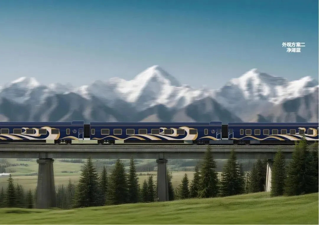 净湖蓝方案:以清新的净湖蓝为主色调,给人以宁静、深远的感觉。这一方案同样注重细节处理,将新疆的自然元素与列车设计完美结合,营造出一种独特的旅行氛围。